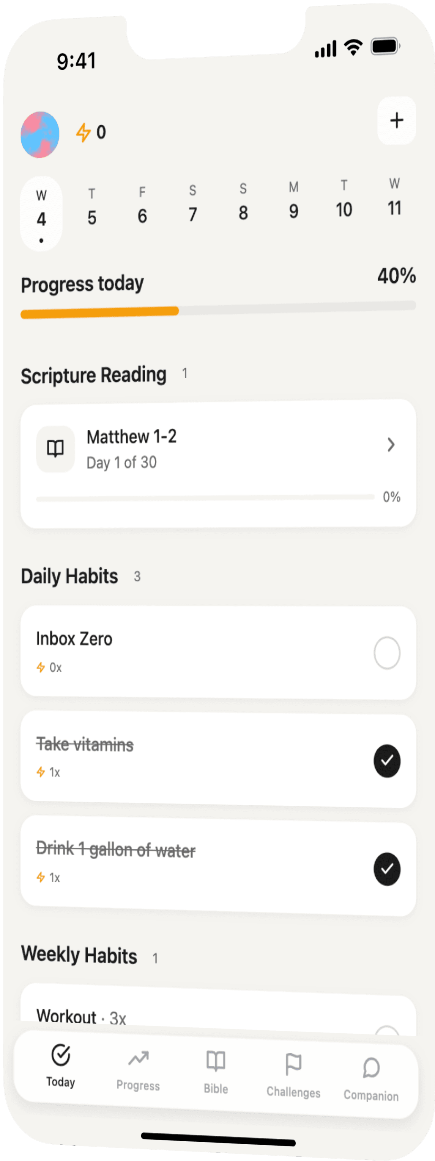 Daily scripture, guided prayer, and community — designed to help you grow deeper in faith, one day at a time.